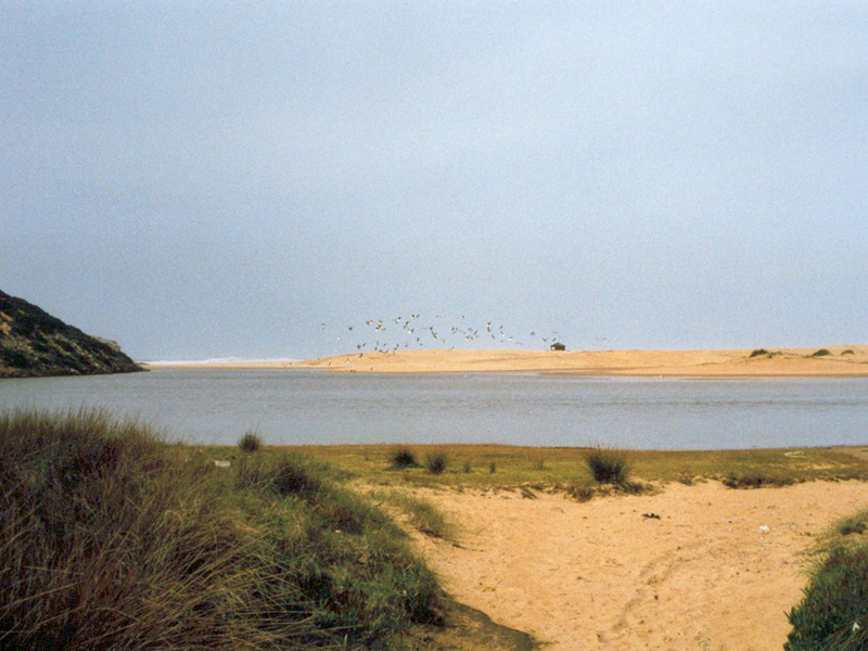 erstreckt sich die im Winter häufig menschenleere Praia da Bordeira, im