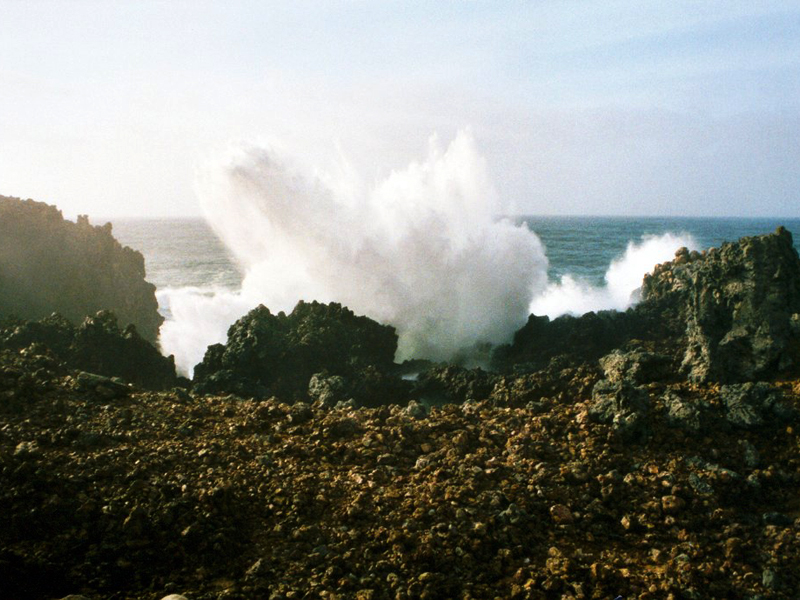 gegen steile Felsen und Wasserfontänen spritzten etwa 30 Meter hoch. Wer