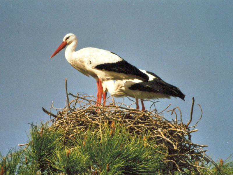 Schutzgebiet wehte, standen die Störche sicher auf ihren großen Nestern.