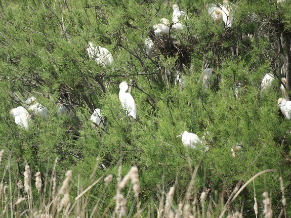 und Kuhreiherkolonie, die Vögel können dort im Frühling aus nächster