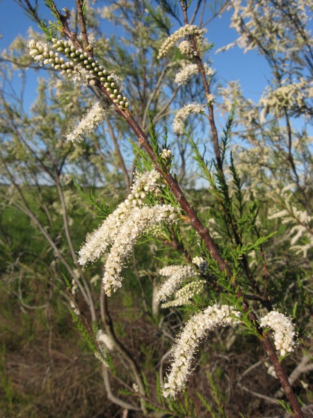 Tamariskenarten vor, darunter auch die rechts gezeigte mit ihren weißen
