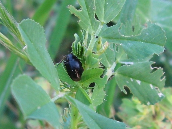 groß. Diese Insekten sind glänzend schwarz gefärbt. Sie tragen zudem