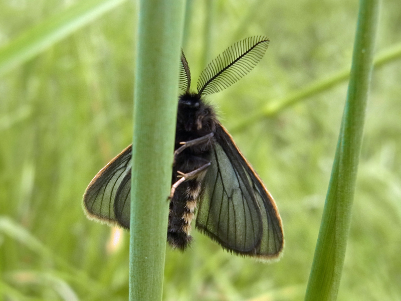 durchscheinend. Die Fühler der Männchen sind lang doppelt gekämmt.