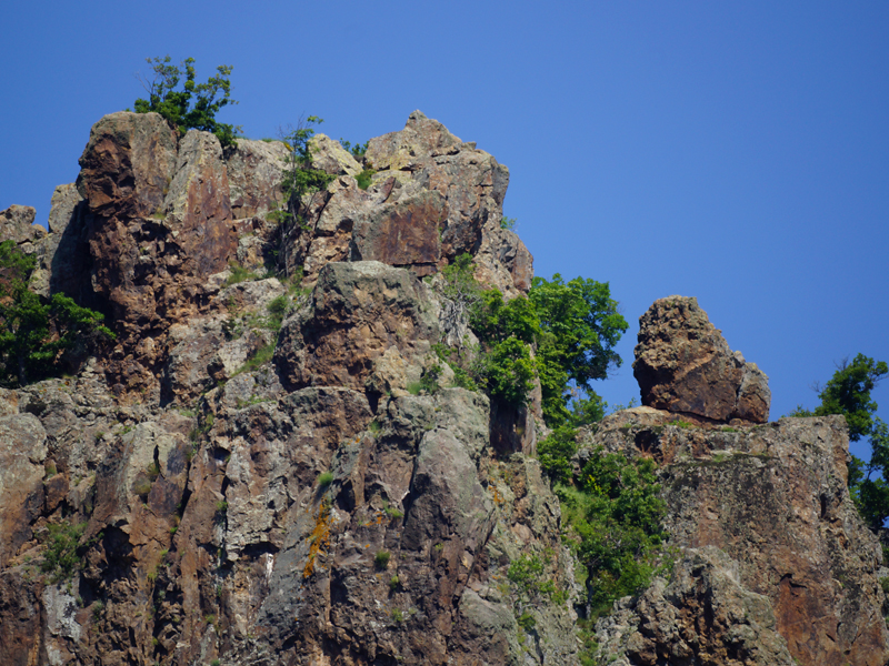 Stelle besonders sehenswert. Steile Felswände, teils dichte Vegetation