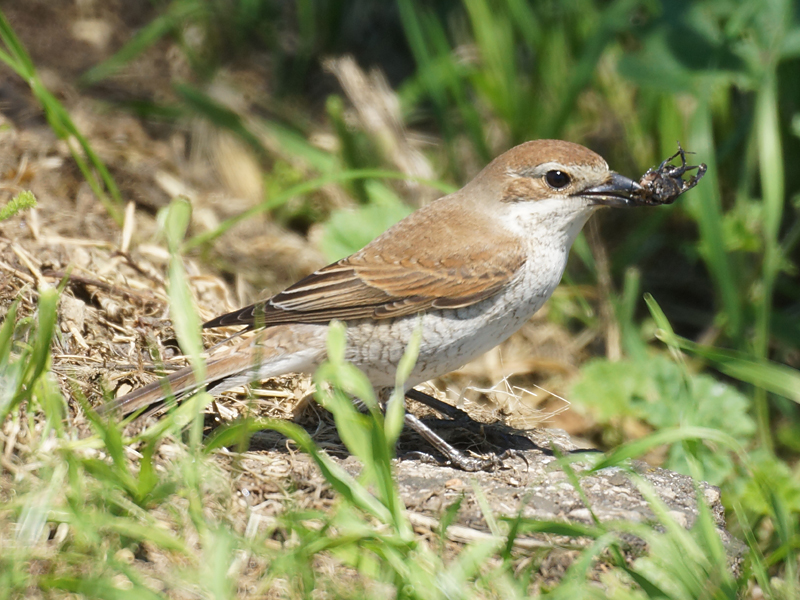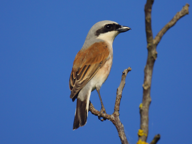 Vögel in Bulgarien - Teil 5Neuntöter (Red-backed Shrike, Lanius collurio) Der Neuntöter erreicht eine Körpergröße von 16 bis 18 Zentimeter. Damit ist er die kleinste in Mitteleuropa heimische Würgerart. Männchen und Weibchen unterscheiden sich bei dieser Vogelart deutlich. Bei männlichen Individuen ist der Kopf oberseits bis in den Nacken hell blaugrau gefärbt, die Kehle ist weiß. Vom Schnabel bis hinter die Augen zieht sich je ein breiter, schwarzer Streif. Die Körperunterseite ist weißlich bis cremefarben, an der Brust ist das Gefieder oft lachsfarben überhaucht. Rücken und Flügel sind bei den Männchen kastanienbraun gefärbt, woher auch der alternative Name Rotrückenwürger rührt. Auf der Oberseite ist der Schwanz dunkel gefärbt. Weibchen sind deutlich schlichter gefärbt und sie tragen keine kräftige schwarze Gesichtsmaske, diese ist lediglich bräunlich angedeutet. Bei ihnen ist die gesamte Oberseite des Körpers rötlich-braun gefärbt, über den Augen befindet sich ein heller Streif. Einfarbig braun mit weißem Saum ist der Schwanz gefärbt, die Körperunterseite ist beige. An den Flanken und an der Brust ist ein Schuppenmuster zu erkennen. Insekten bilden den Großteil der Nahrung der Neuntöter, hinzu kommen weitere kleine Tiere wie Eidechsen. Neuntöter leben in offenen Habitaten, die mit Dornengebüschen durchsetzt sind. Da sie diese in Bulgarien nahezu überall finden, gehören sie zu den häufigsten Vögeln des Landes. Neuntöter verbringen den Winter in Afrika.