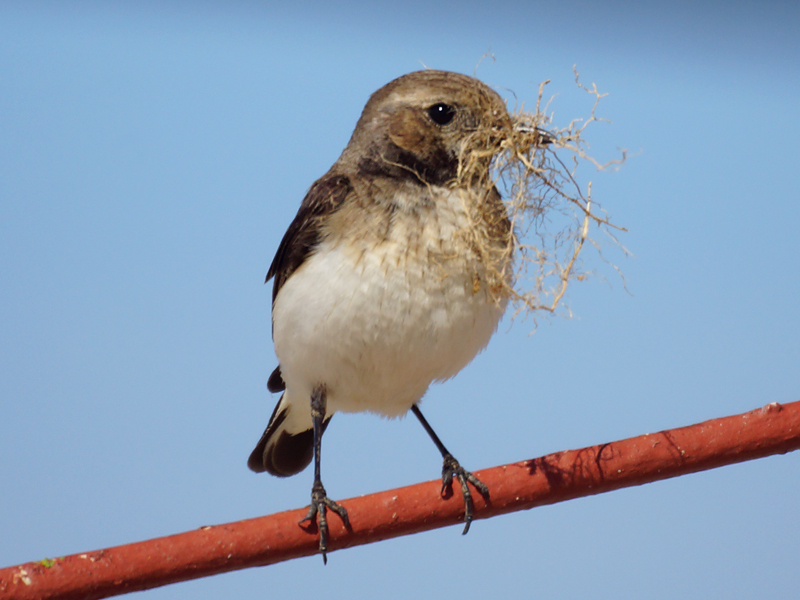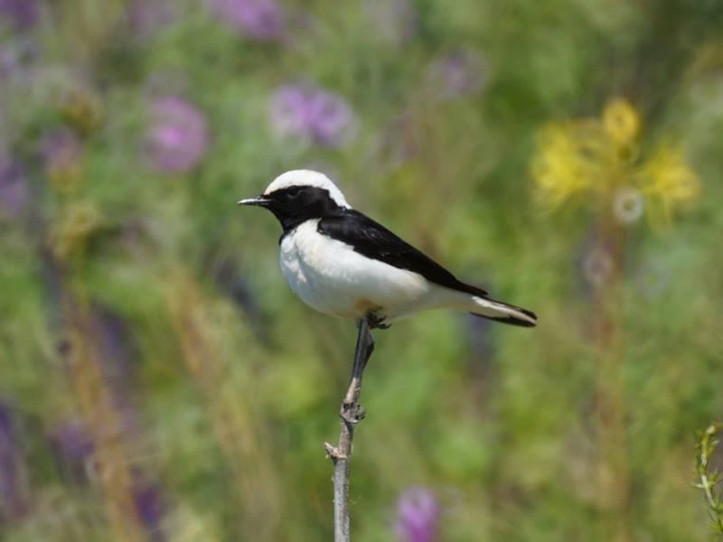 Nonnensteinschmätzer (Pied Wheatear, Oenanthe pleschanka) Mit seiner Körpergröße von nur rund 14 Zentimeter ist der Nonnensteinschmätzer relativ klein. Die Männchen weisen eine sehr markante schwarz-weiße Zeichnung auf, wohingegen die Weibchen auf der Körperoberseite bräunliches und auf der Unterseite weißliches Gefieder haben und damit deutlich schlichter gefärbt sind. Nonnensteinschmätzer ernähren sich von Insekten und leben in eher offener, mit Geröll oder Steinen durchsetzter Landschaft. Das Verbreitungsgebiet dieser Vogelart reicht von Südosteuropa bis ins westliche Asien.