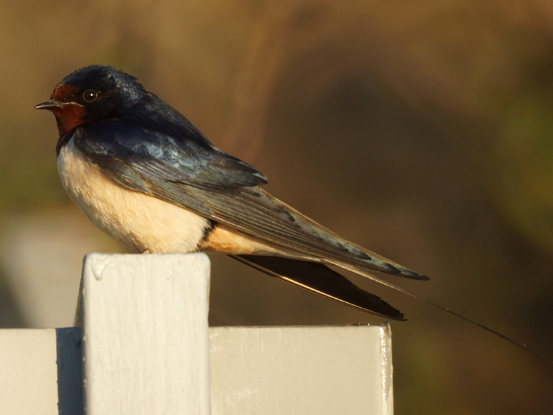 Rauchschwalbe (Barn Swallow, Hirundo rustica rustica) Nur während der warmen Monate des Jahres sind die Rauchschwalben Mittel- und Südeuropa zu beobachten. Diese 17 bis 19 Zentimeter langen Vögel verbringen den Winter im tropischen Afrika. An ihrem sehr tief gegabelten Schwanz sind diese Tiere leicht zu erkennen und von anderen Vogelarten zu unterscheiden. Das Gesicht der Rauchschwalbe ist dunkelrot gefärbt, der Kopf, der Rücken, die Flügel und der Schwanz sind schwarz gefärbt. Das Gefieder trägt dort einen metallischen, bläulichen Schimmer, den man jedoch nur aus der Nähe und im direkten Sonnenlicht besonders gut erkennen kann. Die Körperunterseite der Vögel ist cremeweiß gefärbt. Überall dort, wo Fluginsekten vorkommen, geht die Rauchschwalbe auf die Jagd. Da sie in Bulgarien ideale Lebensbedingungen vorfinden und weil es dort reichlich Insekten gibt, leben dort entsprechend viele Rauchschwalben.
