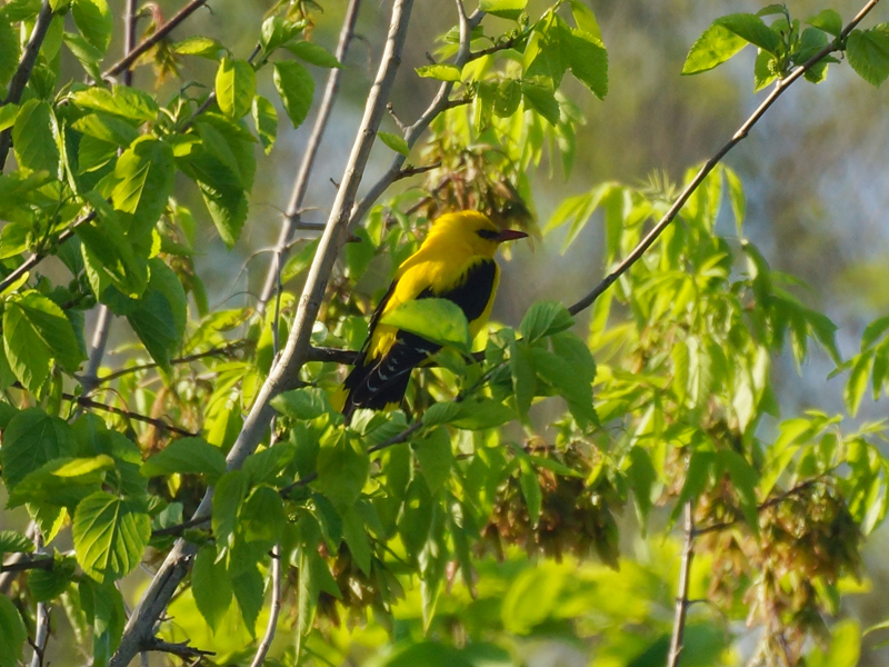 Pirol (Eurasian Golden-Oriole, Oriolus oriolus) Der Pirol ist einer der auffälligsten Vögel Bulgariens, was vor allem für die Männchen gilt. Sie sind leuchtend gelb und schwarz gefärbt, ihr Schnabel ist rötlich. Die Weibchen sind schlichter gefärbt, ihre Flügel sind bräunlich, der Kopf und die Flanken sind gelblich bis grünlichgelb gefärbt und die Körperunterseite inklusive der Kehle sind hell cremefarben mit braunen Strichen. Ihr Schnabel ist weniger kräftig rot als der der Männchen. Pirole haben eine Körperlänge von 24 Zentimeter und sind damit recht groß. Ihr flötender Gesang ist sehr häufig zu hören, auch die Weibchen tragen ihn vor. Allerdings singen die Männchen meist ein wenig virtuoser. Weil Pirole Bäume brauchen, bevorzugen sie Lebensräume wie lichte Auwälder und Bruchwälder, außerdem kommen sie in gewässernahen Gehölzen vor. Ferner leben sie in Laub- und Mischwäldern, auch in Nadelwäldern kommen sie vor. In Bulgarien halten sie sich zudem in Parks und Gärten auf. Früchte sowie Insekten bilden die Nahrung der Pirole. Den Winter verbringen diese Vögel im Süden des afrikanischen Kontinents.