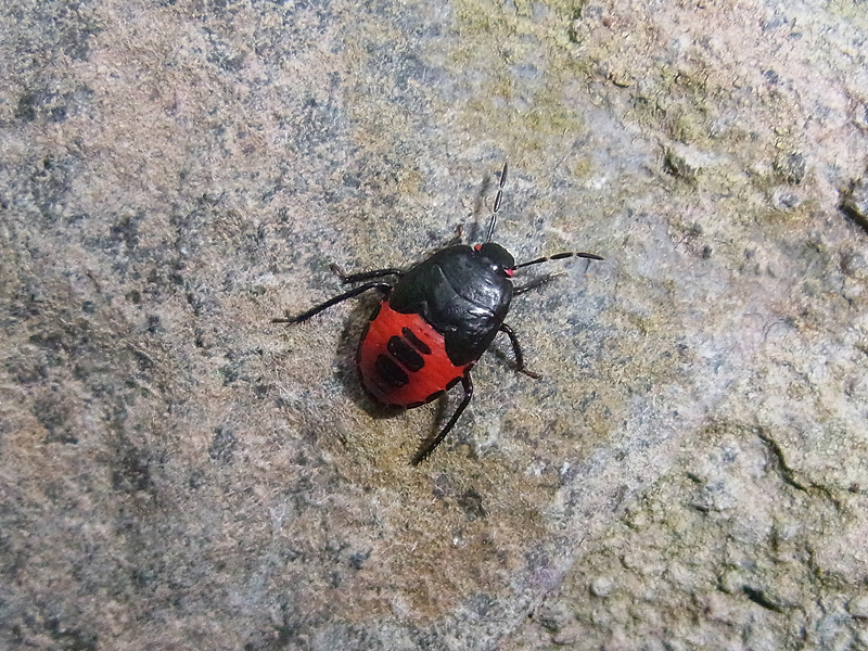 Wie für Baumwanzen üblich, ist das Schildchen sehr groß, es reicht bis