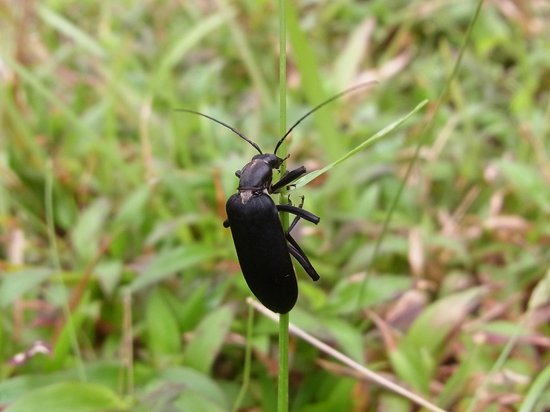 Deckflügel dieser Käferart sind glänzend schwarz bis dunkelbraun