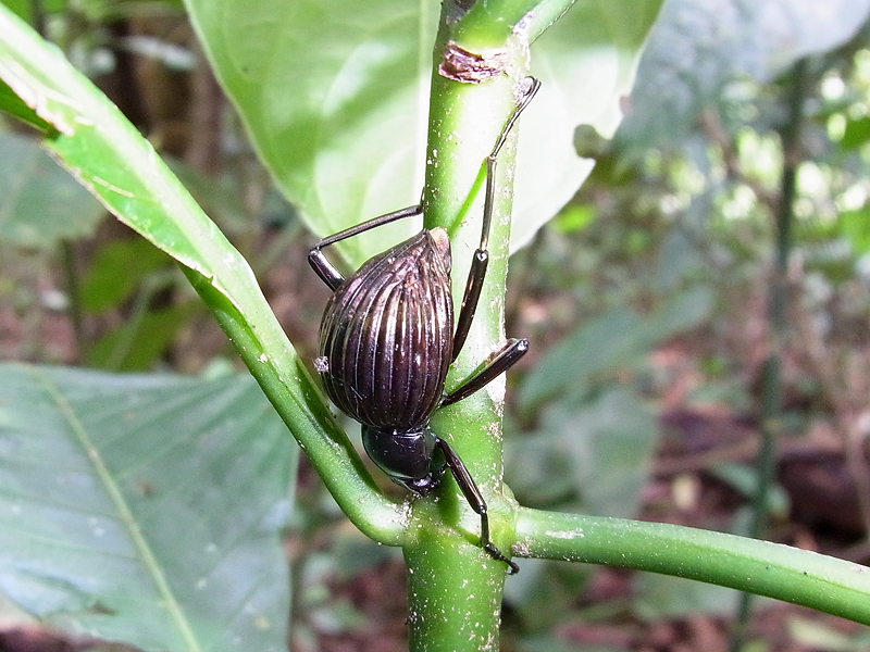 Calophaena ligata schwarz oder grünlich. In feuchten Tropenwäldern sind diese Käfer zu Hause. Das Verbreitungsgebiet dieser Käferart scheint nicht durchgehend zu sein. Aus Costa Rica und Panama sind Funde dokumentiert. Darüber hinaus sind diese Tiere in schon Kolumbien gesehen worden. Foto: 07.05.2012, Hacienda