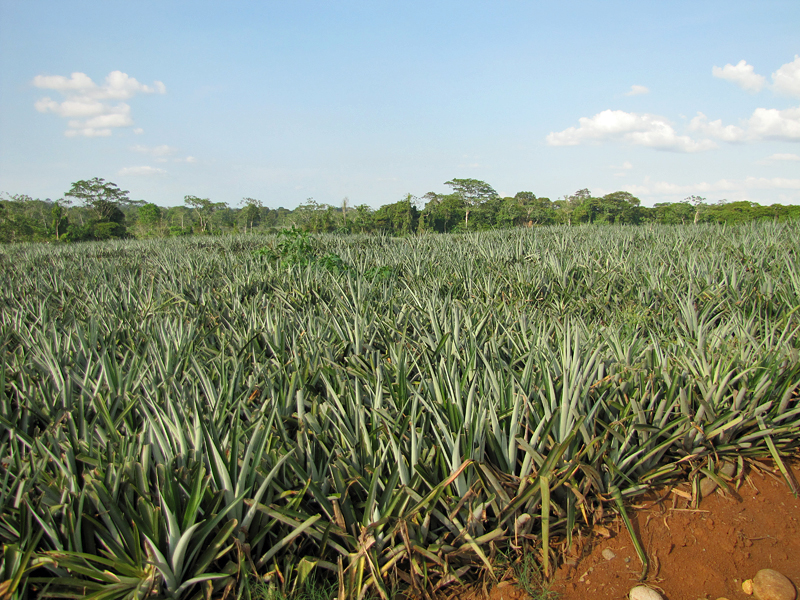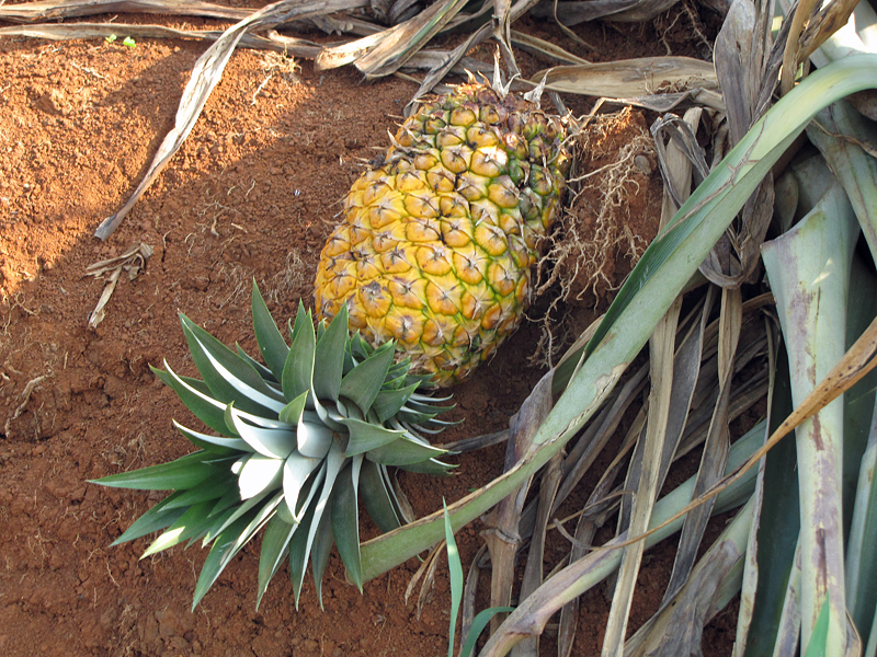 unterschiedliche Ananaszüchtungen in Gärten und Plantagen. Ursprünglich