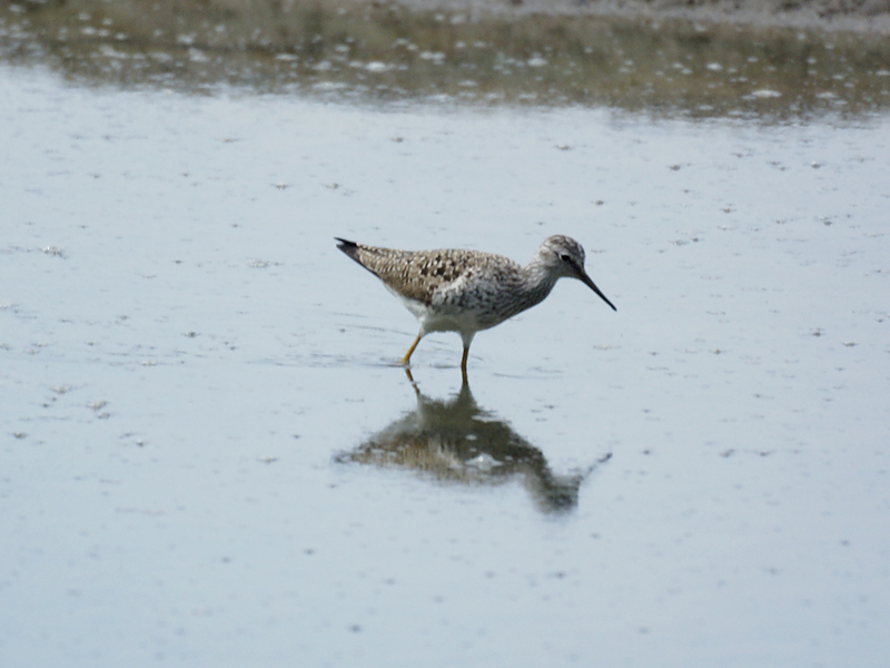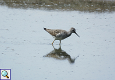 spitze Schnabel ist dunkelgrau, die Beine sind graubraun. Insekten
