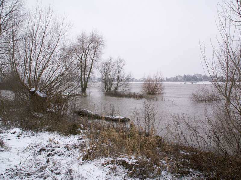 Bäume an einem überfluteten Uferabschnitt |