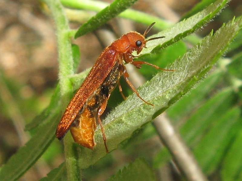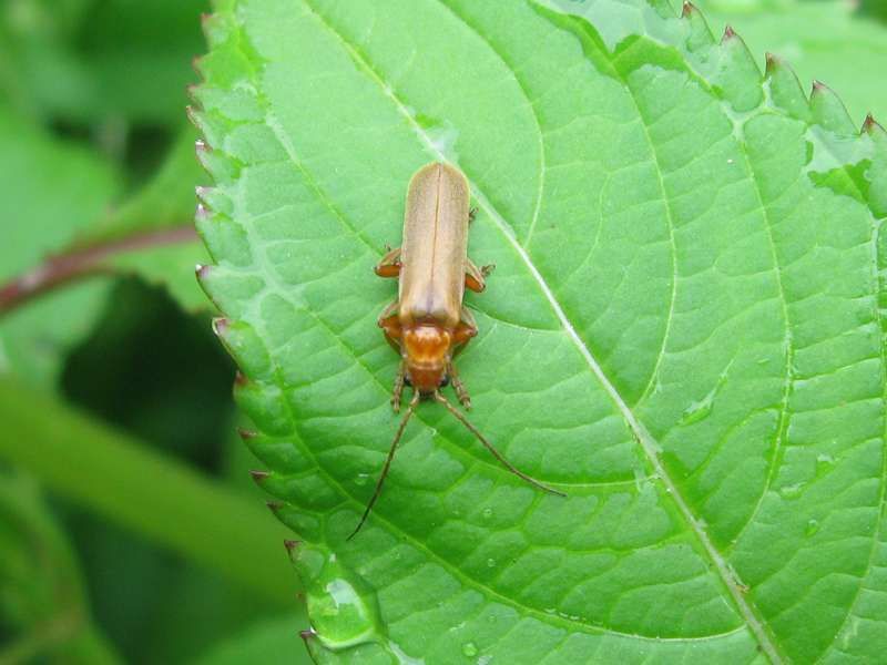 lang. Der Körper ist hell rötlichbraun gefärbt und wie für Weichkäfer