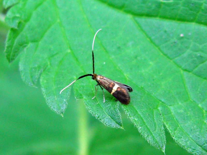Sehr zierliche Tiere sind die Traubenkirschen-Gespinstmotten. Sie