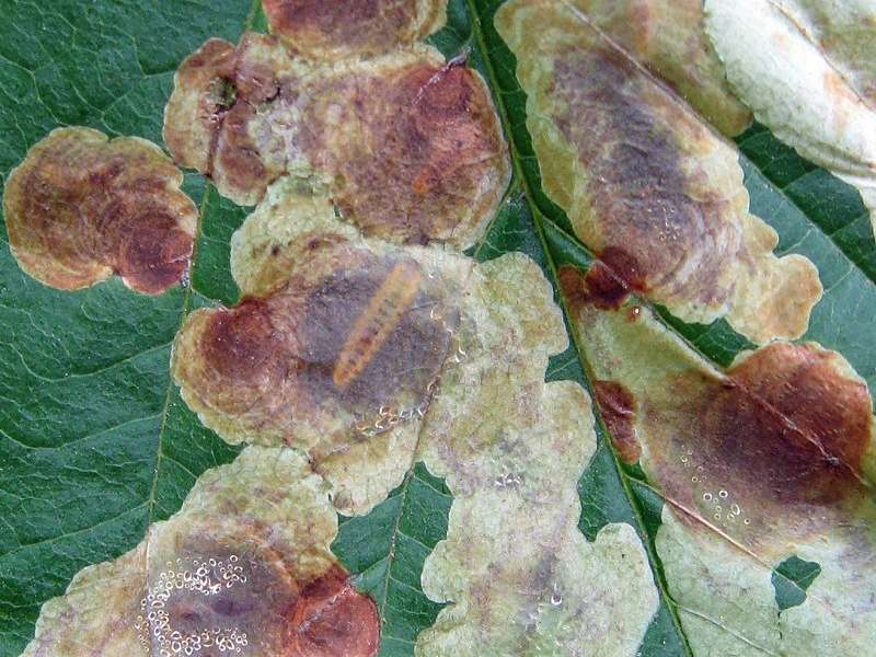 kahl, die dann als eingesponnenes Skelett zurückbleiben. Foto: