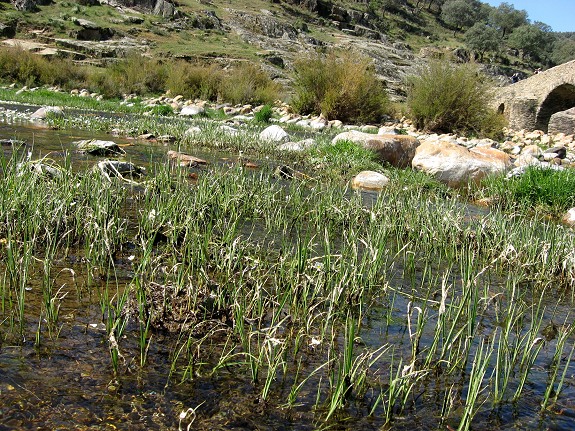 Vegetation im seichten Río Almonte |