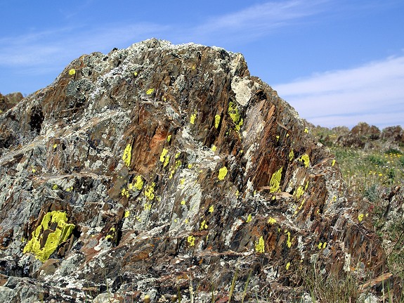 bezeichnet werden. Diese Felsen sind über und über mit bunt gefärbten