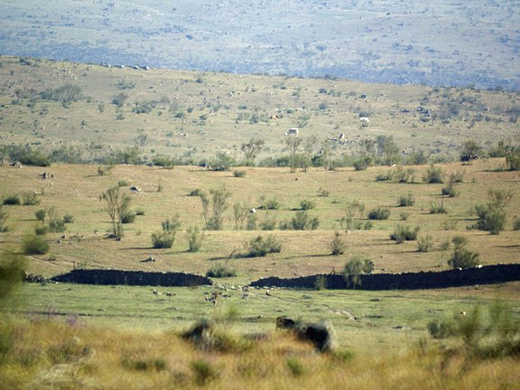 für die steppenähnliche Landschaft sind kleine Steinmauern, die die