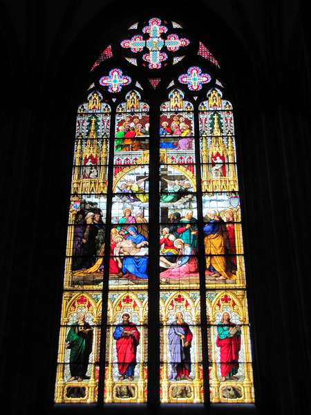 durch die herrlichen bunten Fenster fällt. Zu den weiteren
