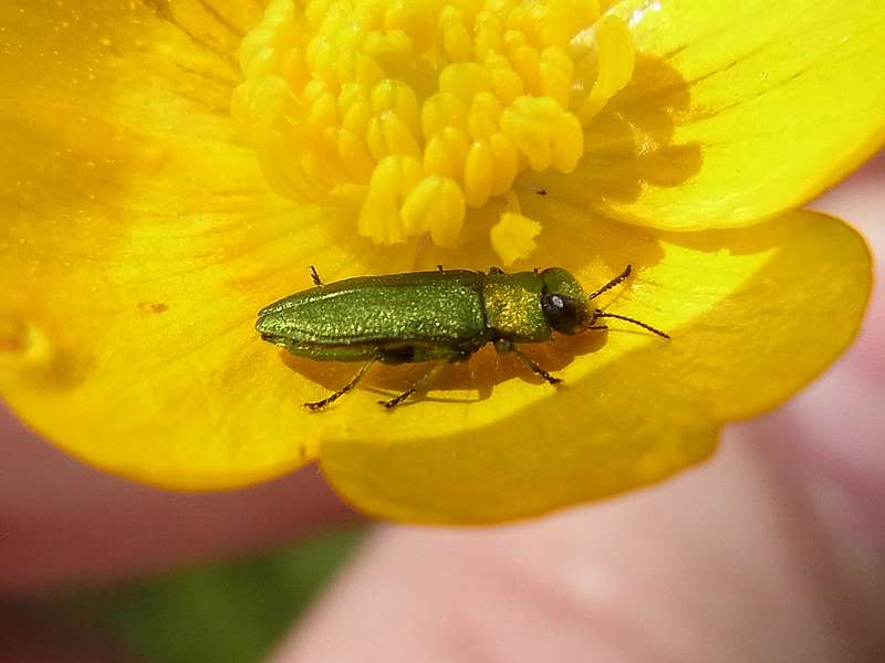 Körperlänge des Glänzenden Blütenprachtkäfers beträgt nur etwa fünf bis