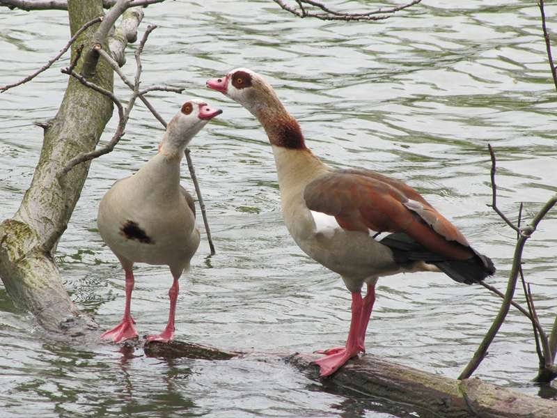 die Beine und Füße sind fleischfarben. Insgesamt wirken Nilgänse