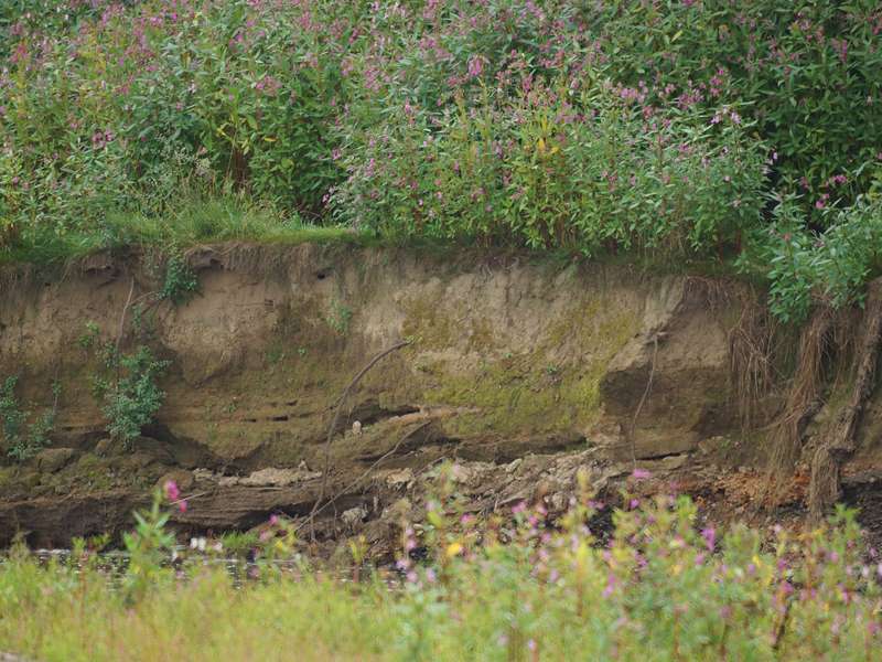 Sie legen in solchen Wänden ihre Niströhren an. Die kiesigen Inseln und