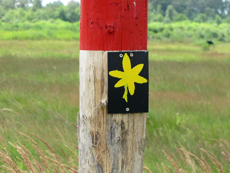 Piktogramm einer Moorlilie kennzeichnet die langschaftlich sehr
