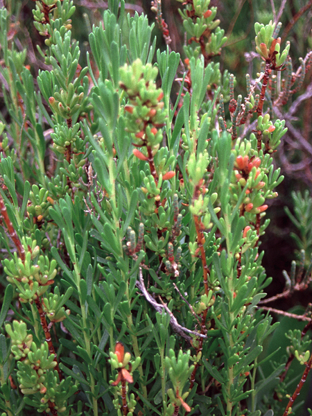 immergrün, ihre Blätter sind ledrig, länglich-lanzettlich und an der