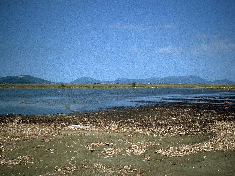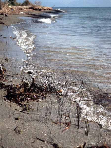 der unaufgeräumte Strand am westlichen Ende der Halbinsel deutlich