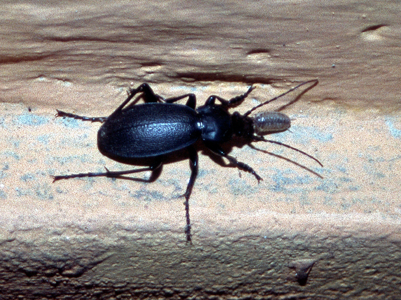 Käferart. Der Körper dieser Tiere ist schwarz gefärbt, die glänzenden