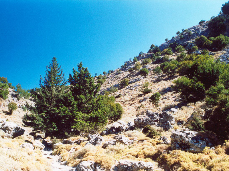 Bäume im oberen Teil der Ímbros-Schlucht |