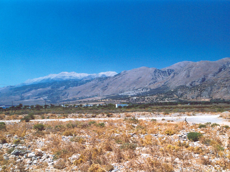 rechter Hand die Gipfel des Bergmassivs "Lefka Óri" sichtbar. Übersetzt