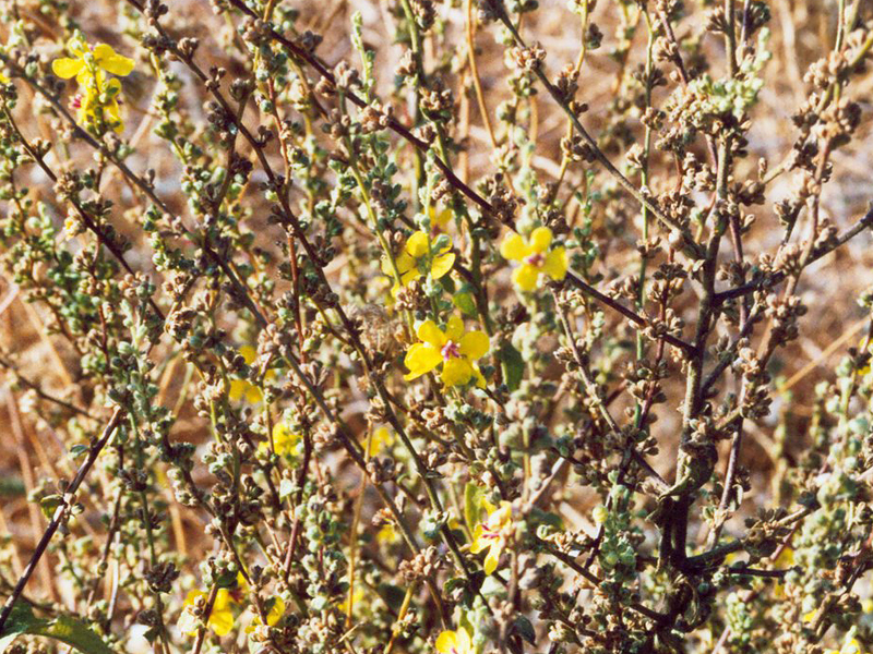 steht diese Königskerzen-Art in Blüte. Ihre Blütenblätter sind gelb