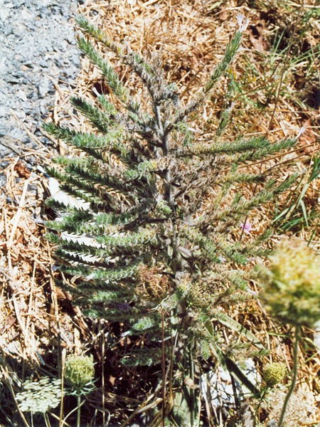 borstig behaart. Vom Stängel gehen zahlreiche Zweige ab, an denen sich