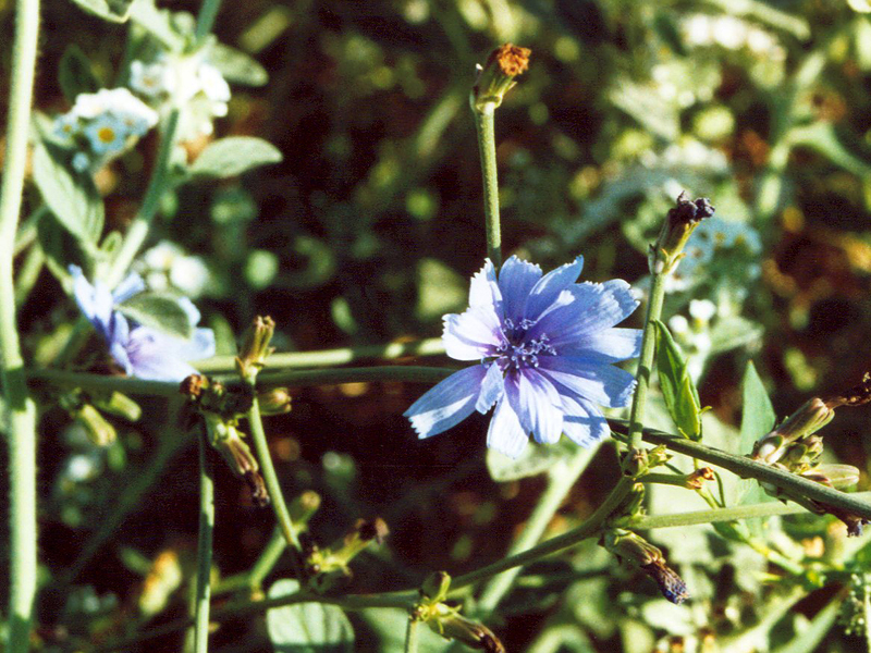 Auf kalkigen Böden und Felsen gedeiht die Stachelige Zichorie, ein