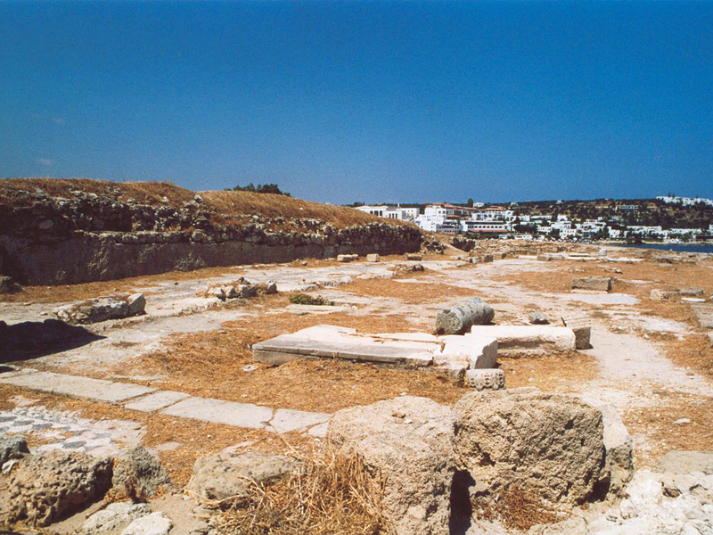 auf das Plateau, auf dem die Ruine der dreischiffigen Basilika Kastríou