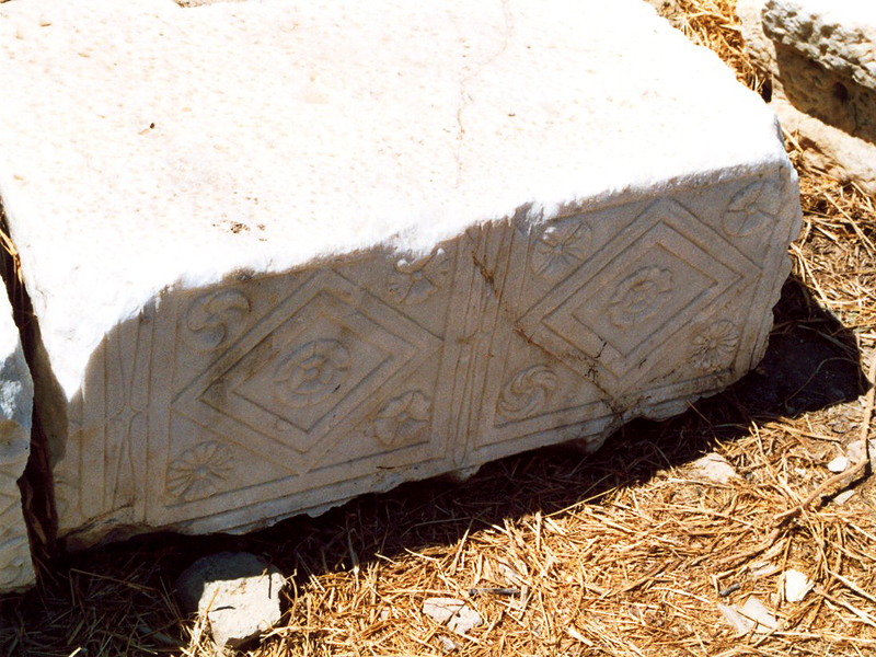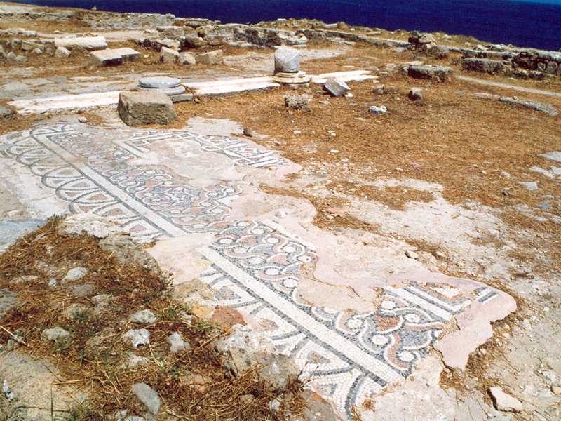 umgestürzten Säulen sowie der schönen Mosaike, die einst ihren Boden