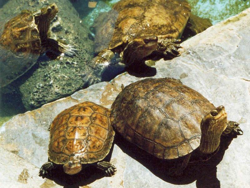 Gefleckten Walzenskink und die scheuen Kaspischen Bachschildkröten (Mauremys