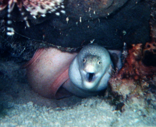 Muränen halten sich tagsüber in Spalten und Höhlen versteckt und man