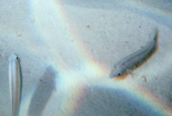 Sandboden und nie höher oder im freien Wasser geschwommen. Foto: Juli 2002, Lagune