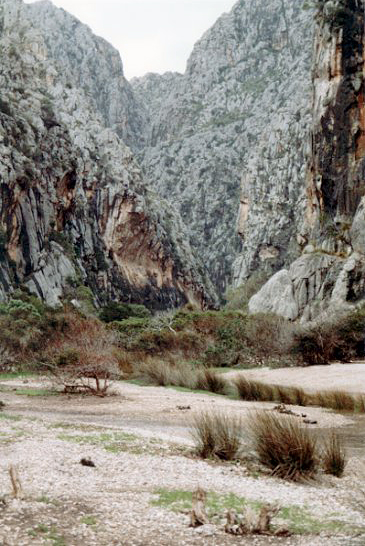 Schlucht, die sich in der Nähe der Ortschaft Sa Calobra ins Landesinnere