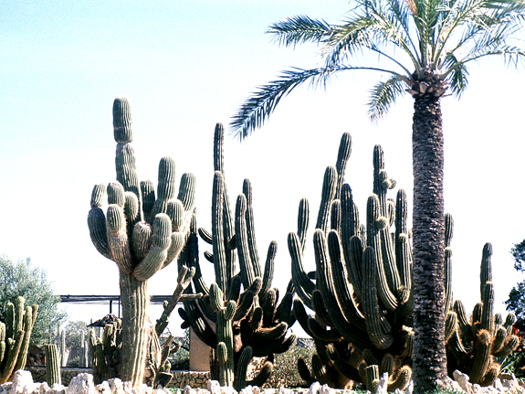 mit beeindruckend großen Kakteen bepflanzten Areal entlang