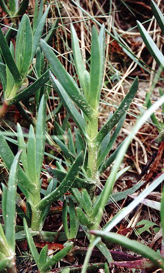 Diese Pflanzenart ist fast kahl. Die wenigen Blätter sind wechselständig