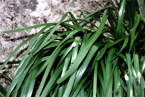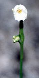 langen, schmalen, grün gefärbten Stielen je eine weiße Blüte. An der