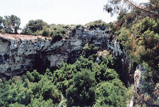 eingestürzt ist. Das Ergebnis dieses Ereignisses ist die Maqluba-Senke.