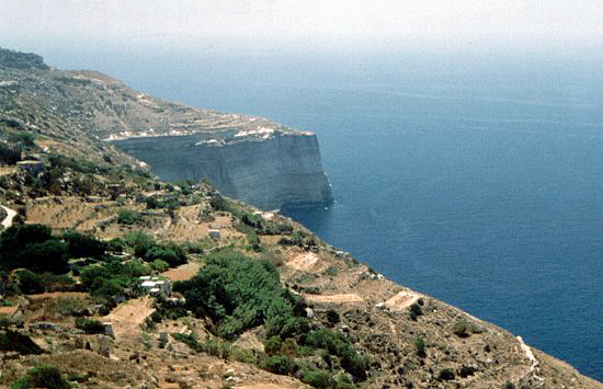 Steilküste der Insel. Fährt man mit dem Bus von Valletta aus