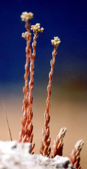 einen Zentimeter hoch. Foto: Juni 2001, Tal Qarbuni Nizza-Mauerpfeffer (Tree Sedum, Sedum sediforme)
