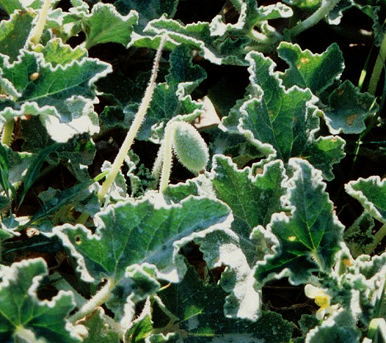 gekocht eignen sich ihre Blätter als Salat. Foto: Juni 2001, Dingli-Klippen Spritzgurke (Squirting Cumcumber, Ecballium elaterium)